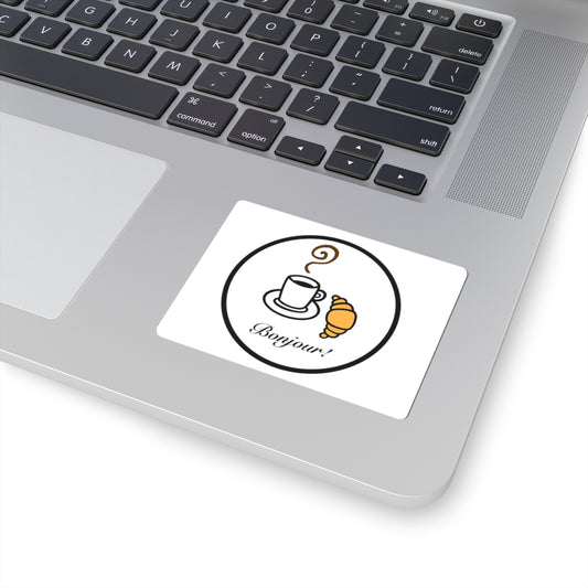 Charming Coffee Stickers, Cute Vinyl Stickers for Laptops, Bonjour Coffee Decor, Gift for Coffee Lovers, Ideal for Journals & Scrapbooking